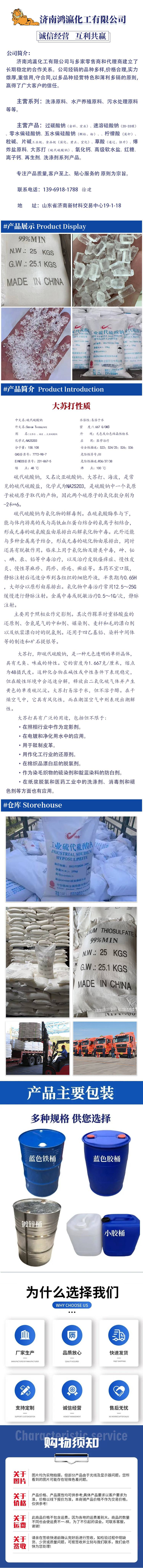 主营涵盖洗涤原料、水产养殖原料、污水处理原料三大核心板块,产品包括:过碳酸钠、速溶硅酸钠、零水偏硅酸钠、五水偏硅酸钠(颗粒 / 粉)、英轩柠檬酸、粒碱、工业级 / 食品级片碱、草酸、爆炸盐原料、大苏打(硫代硫酸钠)、氧化钙、高级软水盐、红糖、离子钙、再生剂及洗涤剂系列产品。