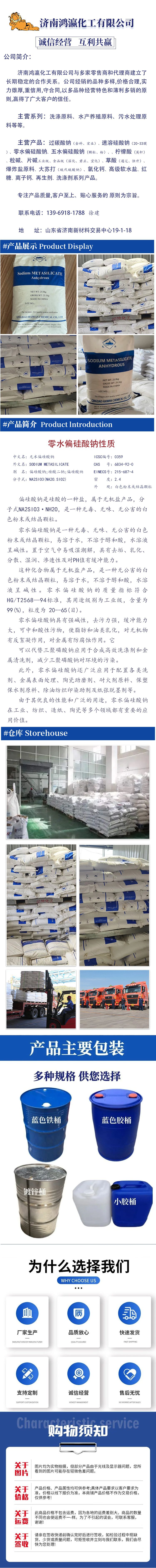 主营涵盖洗涤原料、水产养殖原料、污水处理原料三大核心板块,产品包括:过碳酸钠、速溶硅酸钠、零水偏硅酸钠、五水偏硅酸钠(颗粒 / 粉)、英轩柠檬酸、粒碱、工业级 / 食品级片碱、草酸、爆炸盐原料、大苏打(硫代硫酸钠)、氧化钙、高级软水盐、红糖、离子钙、再生剂及洗涤剂系列产品。